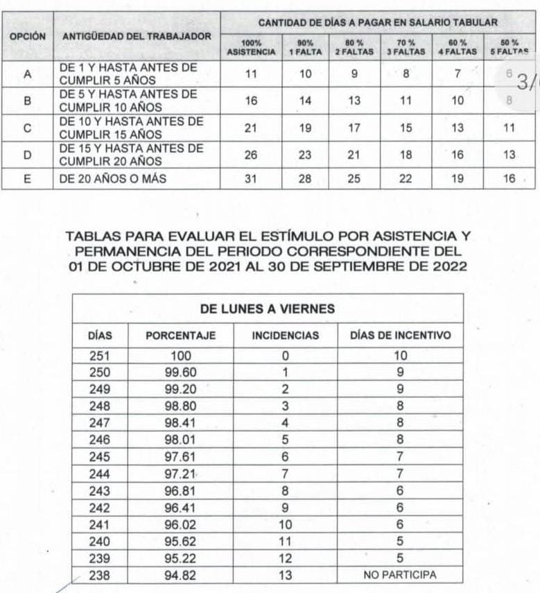 Cuando se toman días económicos, repercuten en la calificación de los estímulos de asistencia y permanencia perfectas que se otorgan cada año a los trabajadores, de acuerdo a una tabla que muestra el porcentaje que se descuenta por cada día que se solicita. Quienes no toman estos días, no representa afectación con disminución del bono.