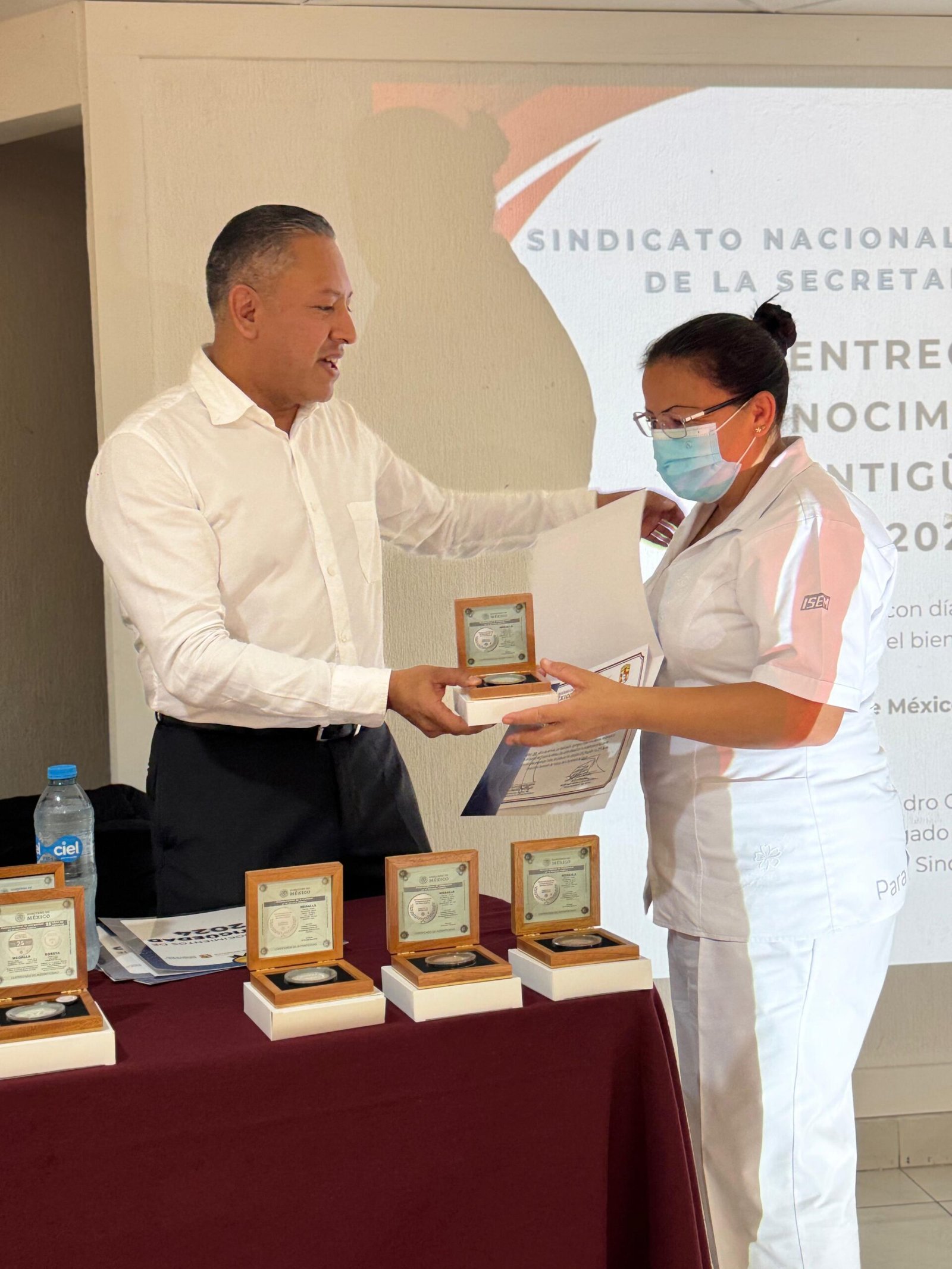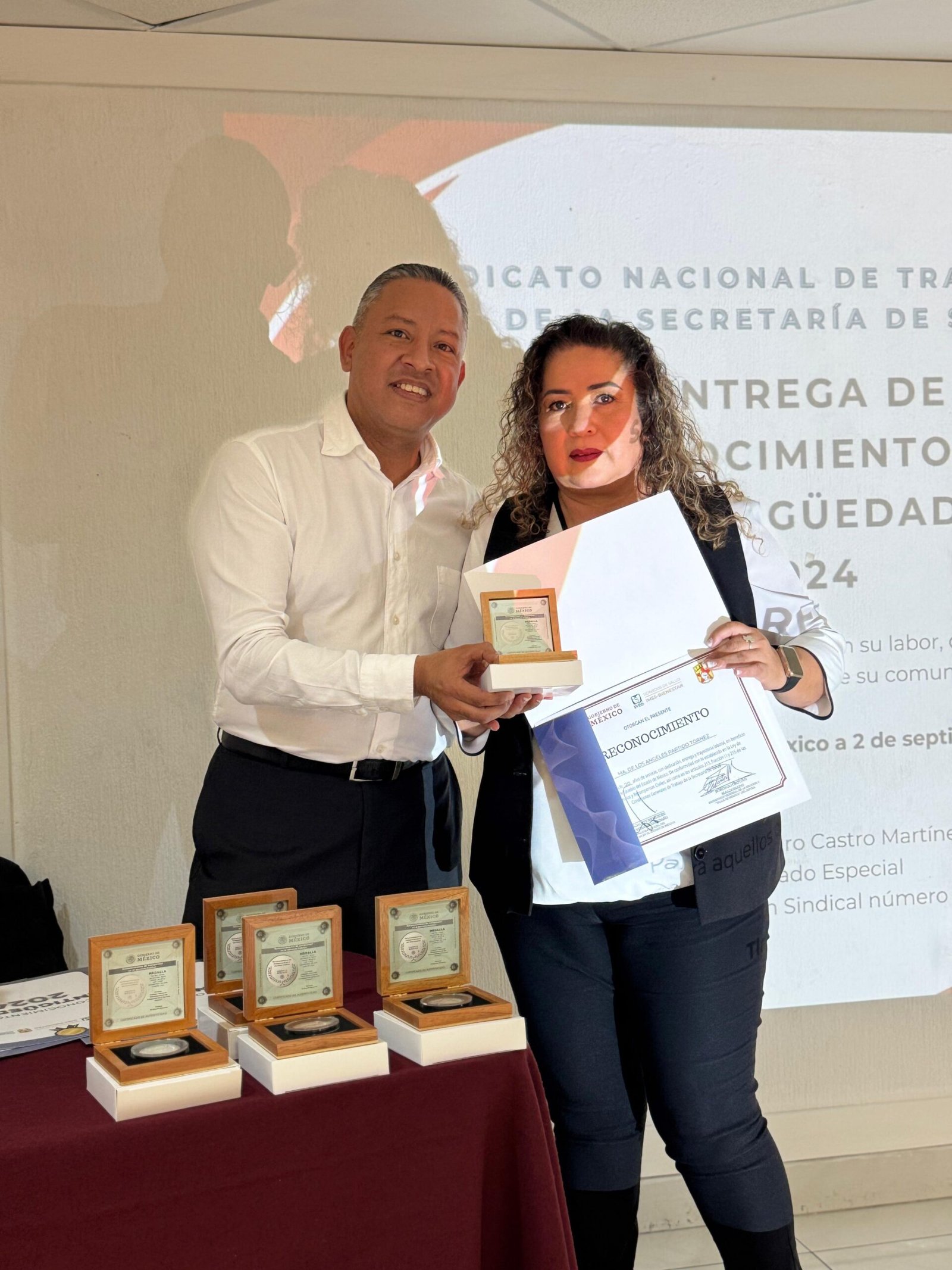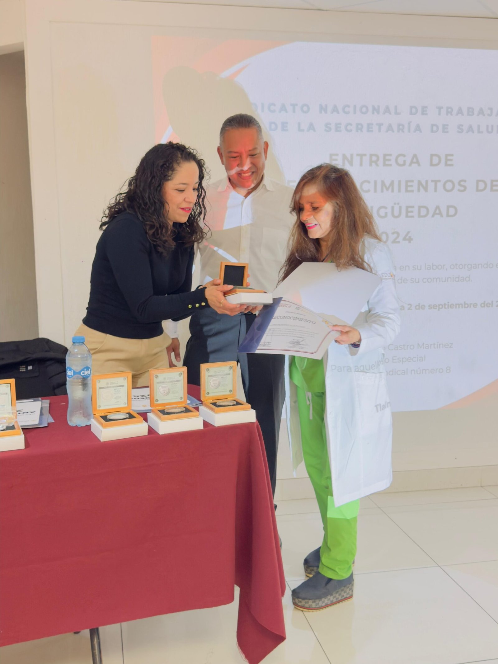En un emotivo acto lleno de orgullo y compañerismo, trabajadoras y trabajadores de IMSS-BIENESTAR recibieron medallas y reconocimientos por sus años de servicio dentro del Instituto de Salud del Estado de México (ISEM).
