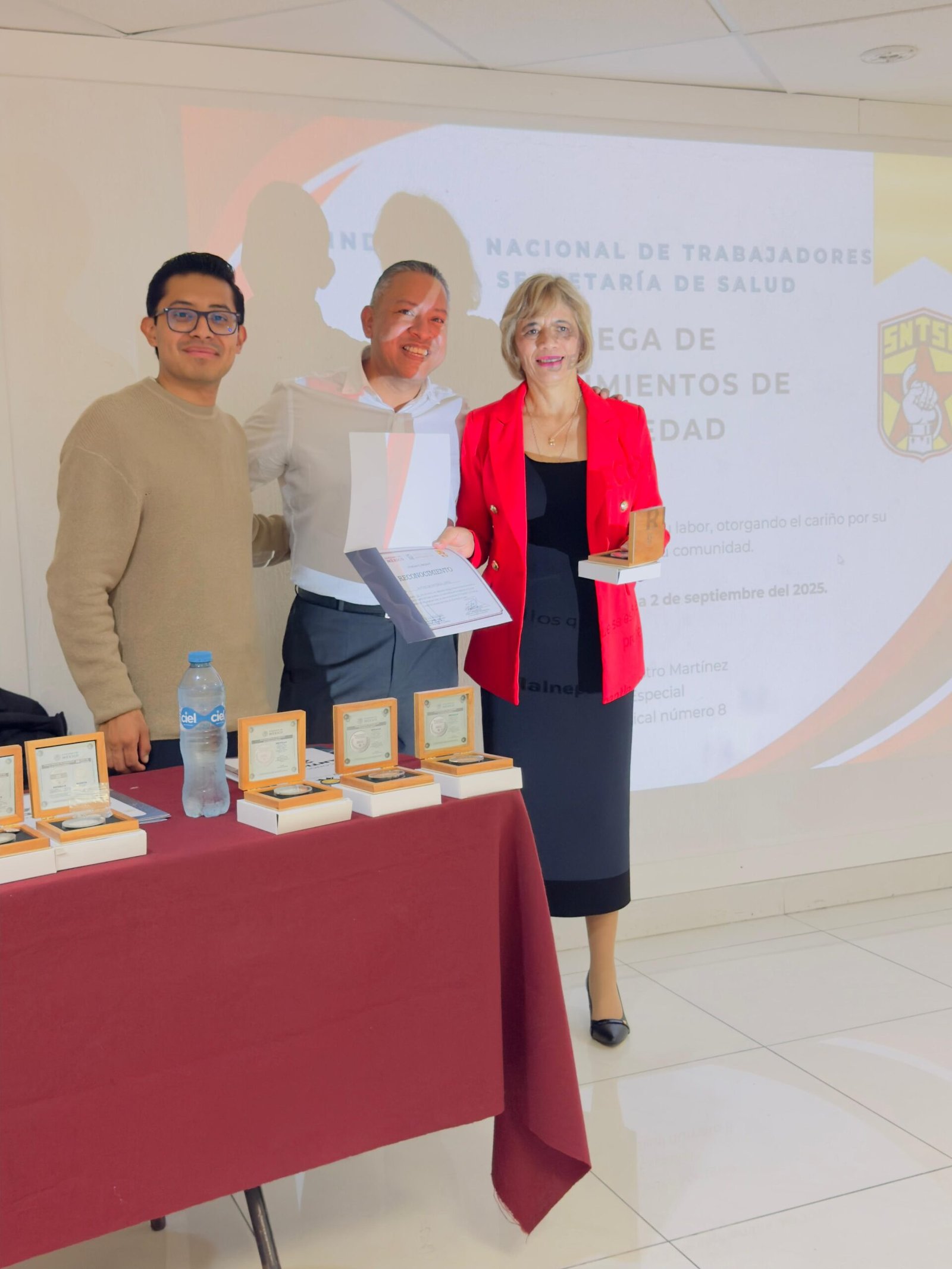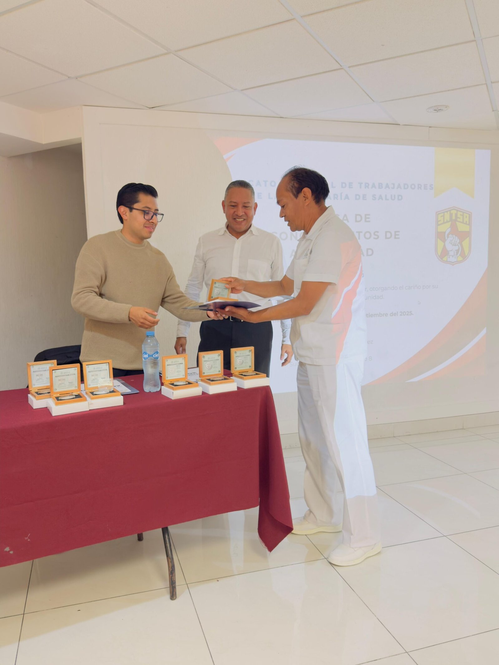 El Sindicato Nacional de Trabajadores de la Secretaría de Salud (SNTSA) felicitó a las y los homenajeados, reconociendo que su ejemplo fortalece al gremio y reafirma la importancia de la unidad sindical. Asimismo, reiteró su compromiso de seguir acompañando a las y los trabajadores en la búsqueda de mejores condiciones laborales y en la defensa de sus derechos.